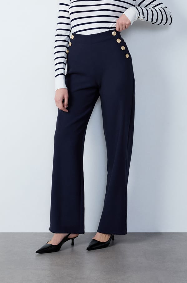 Wide Cut Trousers with Button Details;${refinementColor}