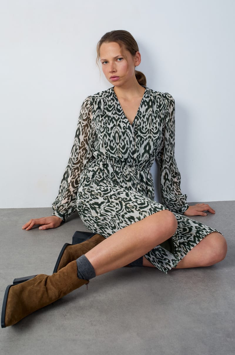 La silhouette se fait légère et gracieuse dans cette robe fluide à imprimé. Confectionnée dans une matière ornée de fine...