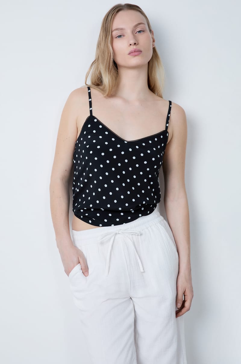This polka dot camisole is simply irresistible. A true invitation to comfort, it ensures ideal support thanks to its el...