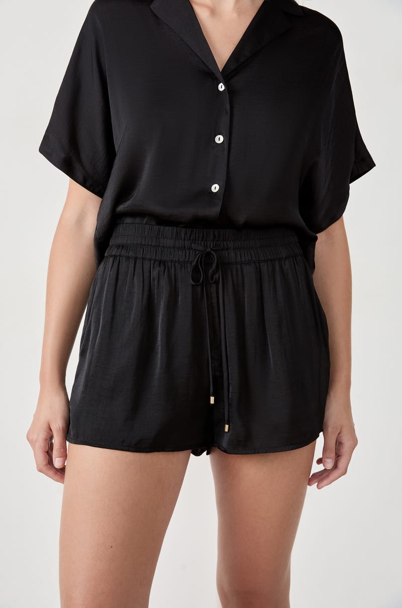 Pensé pour allier chic et confort, ce short satiné opte pour une coupe fluide et légère. Il est muni d'une taille é...