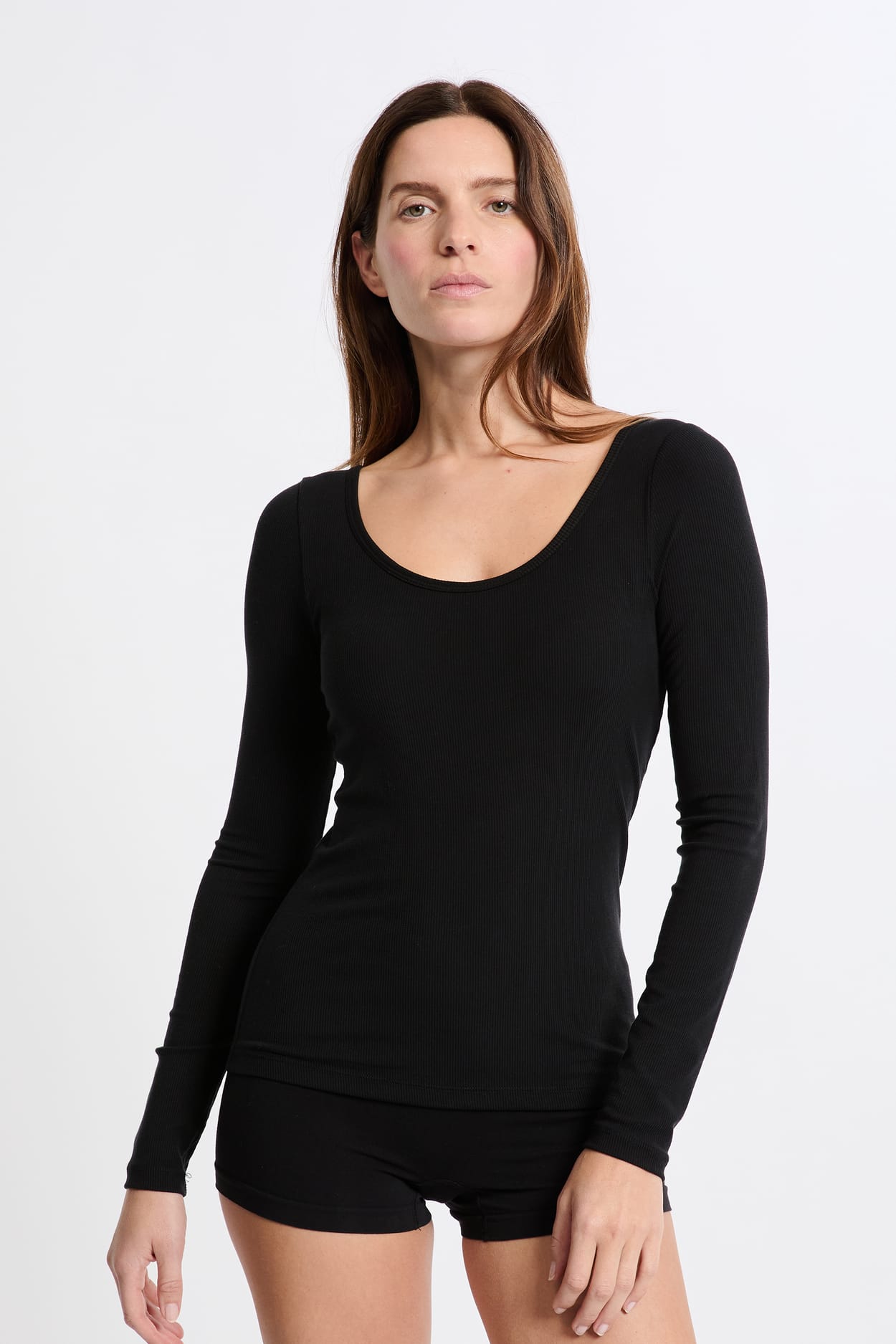 T-shirt manches longues col rond avec brassière intégrée;${refinementColor}